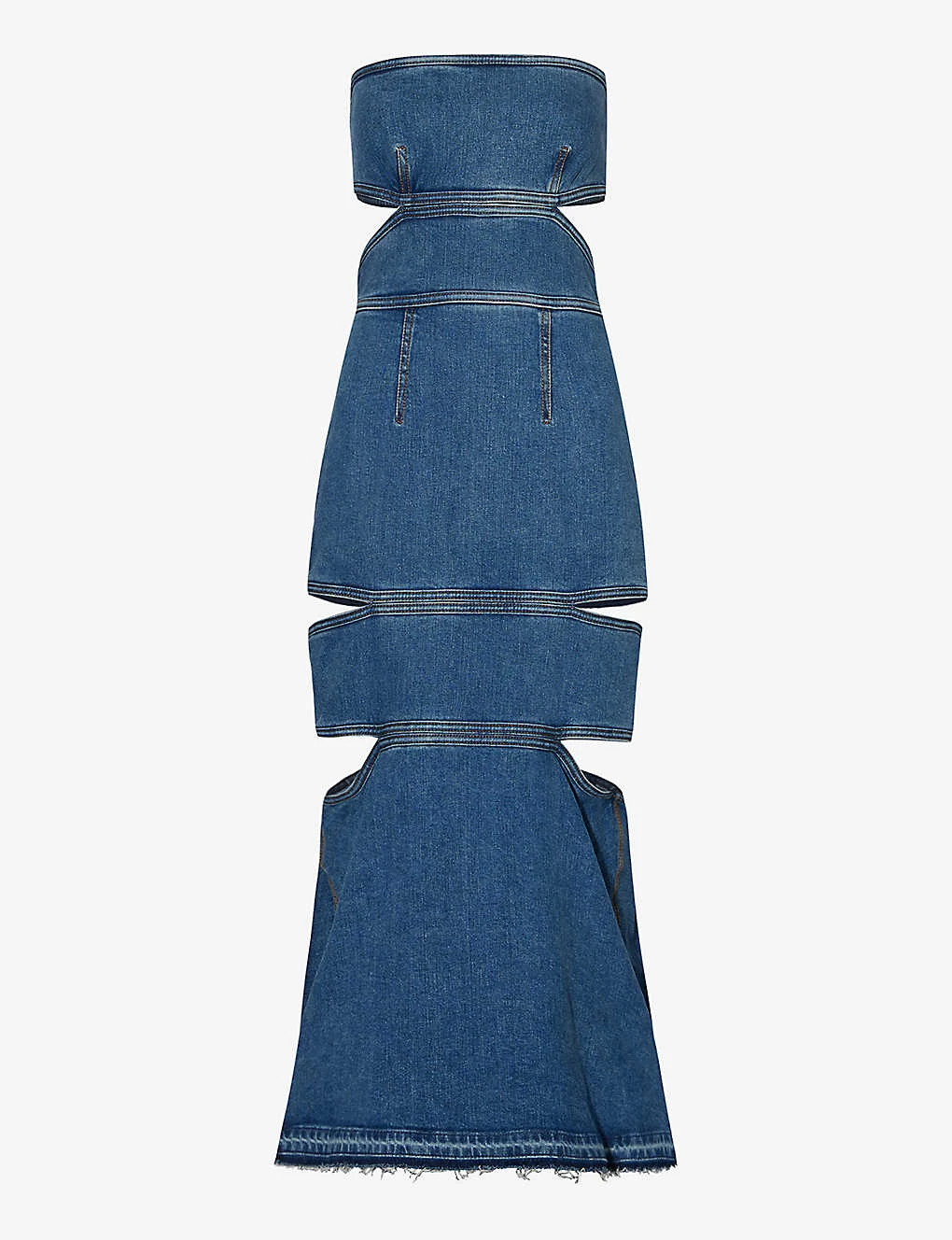 Alexander McQueen Slash Cut-out Stretch-denim Midi Dress