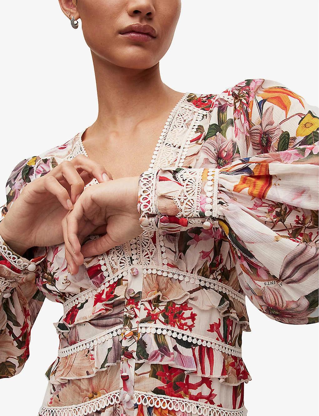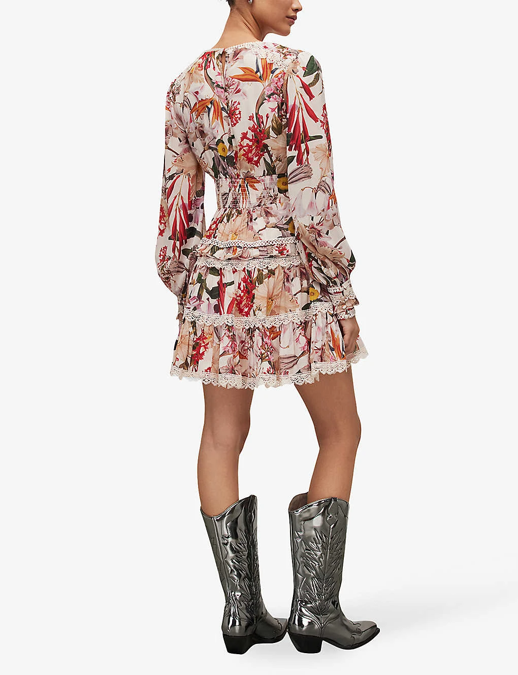 Be the first to review “AllSaints Zora Leondra Floral-print Lace-trim Woven Mini Dress” Cancel reply