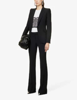 - Slim fit, high neck, short capped sleeves, brand text print at front, brand graphic print at front and back