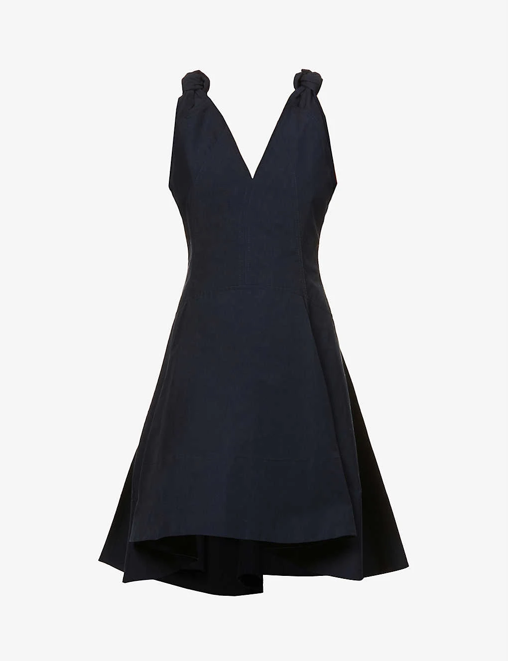 - Regular fit, plunge V-neck, sleeveless, A-line skirt, curved hem
