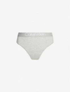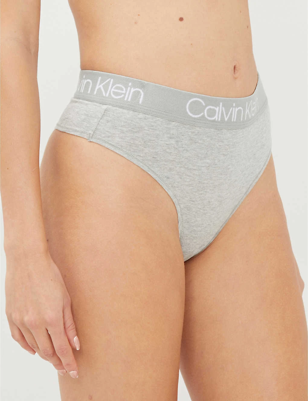 Calvin Klein stretch-cotton thongDetails:High riseBranded elasticated waistbandHigh-legsV-string at backCotton gussetSlips onFabric:95% cotton, 5% elastaneLightweight, slight stretchSize & Fit:True to sizeCut to a fitted silhouetteCare:Machine wash