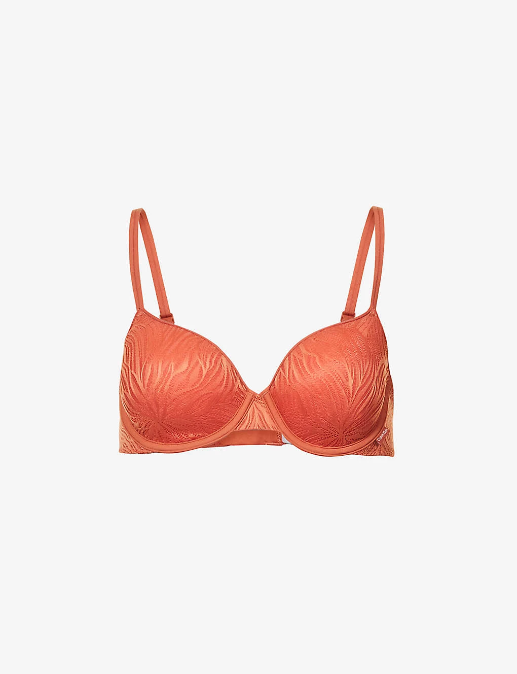 - T-shirt silhouette, adjustable straps, soft lined cups, underwired, floral lace pattern