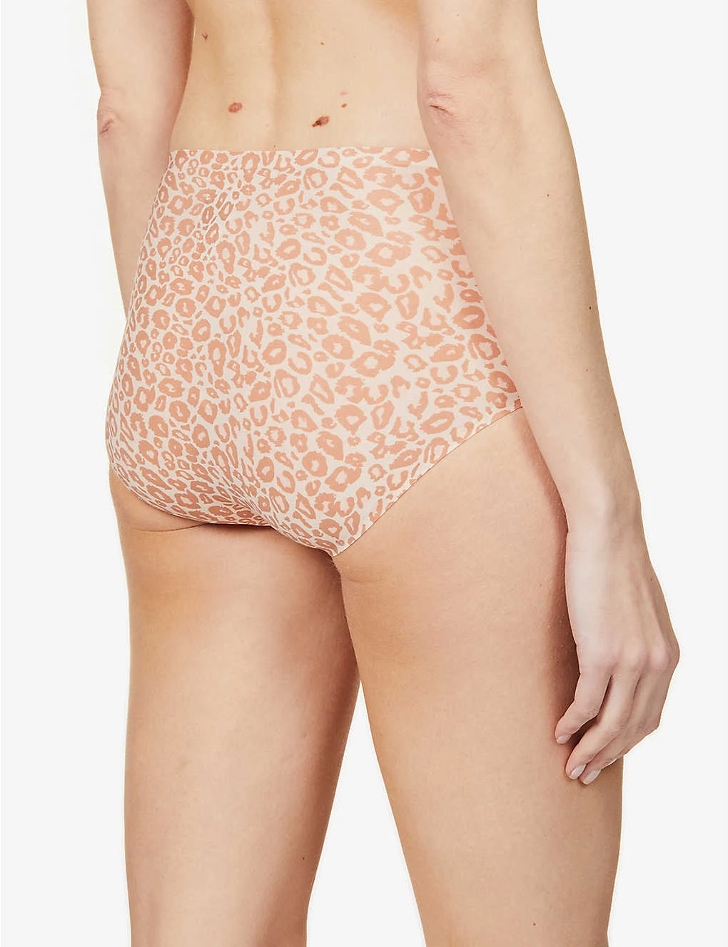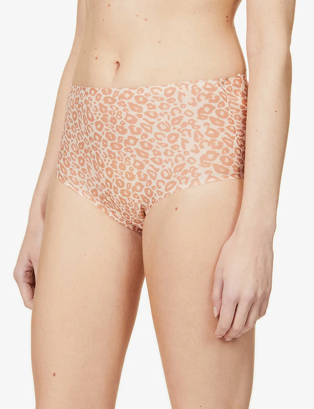- High rise, all-over leopard print, full coverage at back, lined gusset