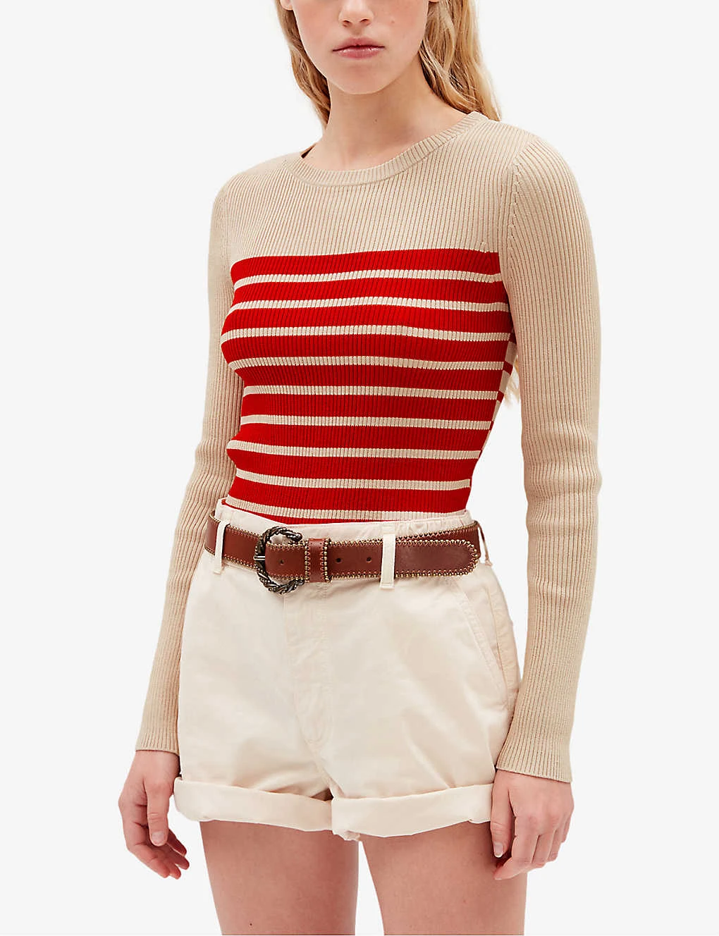 CLAUDIE PIERLOT Mandibule Stripe-pattern Stretch-knit Fitted Jumper