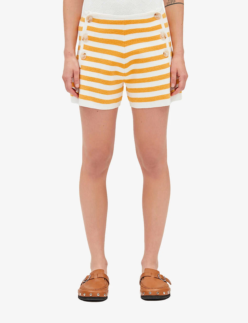 CLAUDIE PIERLOT Striped Button Terry Cotton-blend Shorts