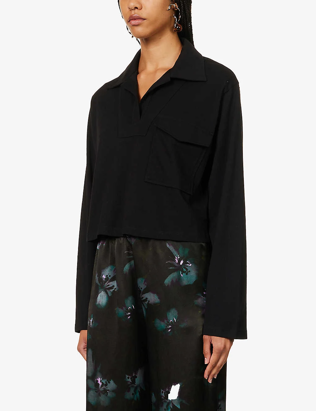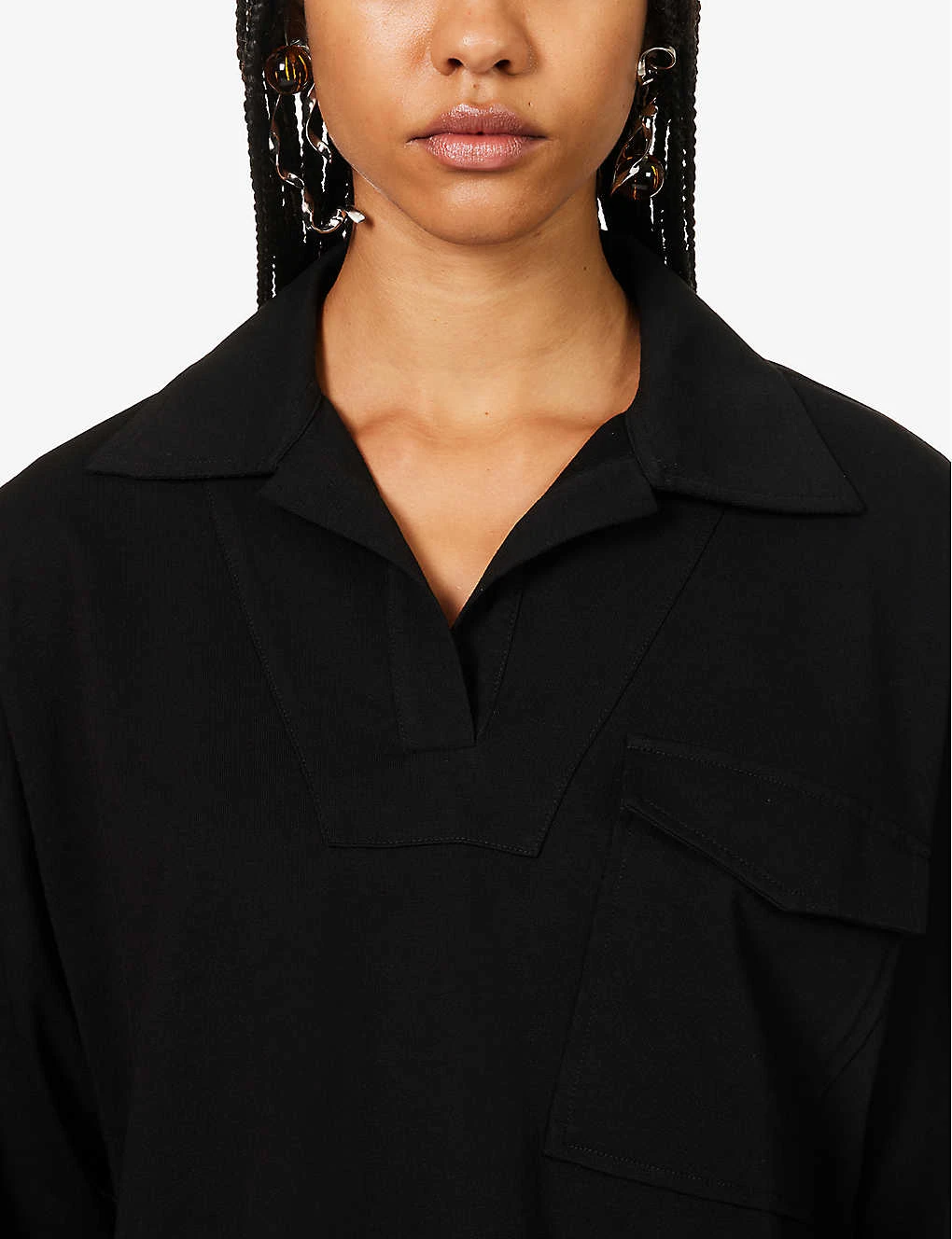 - Relaxed fit, collar, V-neckline, long sleeves, flap pocket at chest, jersey texture