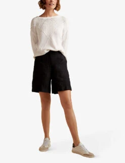 The White Company stretch-jersey T-shirt Slips on Scoop neck, short sleeves, straight hem 95% cotton, 5% elastane Machine wash cold True to size Size 8: Length 24″” Model is 5ft 10″” and wears a size 8