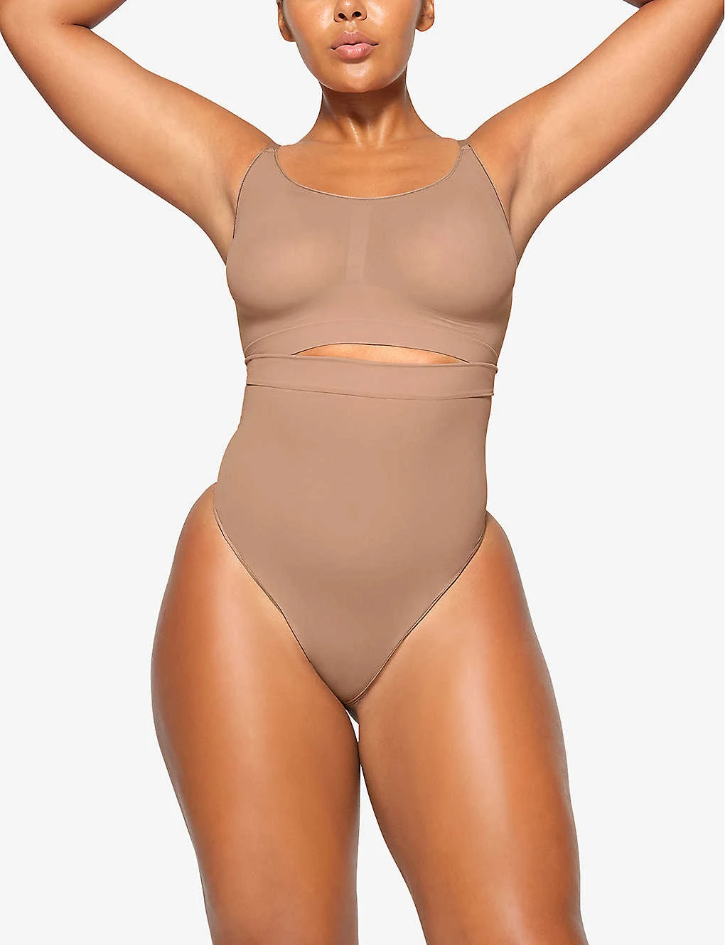- Fitted, super high rise, elasticated waistband, seamless construction, sculpting panel at waist, minimal coverage at back