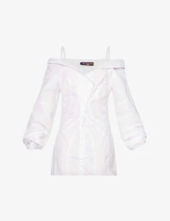 Be the first to review “Exposed-shoulder Dipped-hem Cotton Mini Dress” Cancel reply