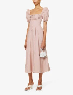 - Slim fit, sweetheart neckline, sleeveless, underwired cups, gathered pattern at cups, corset bodice, split at side, all-over soft gathered pattern
