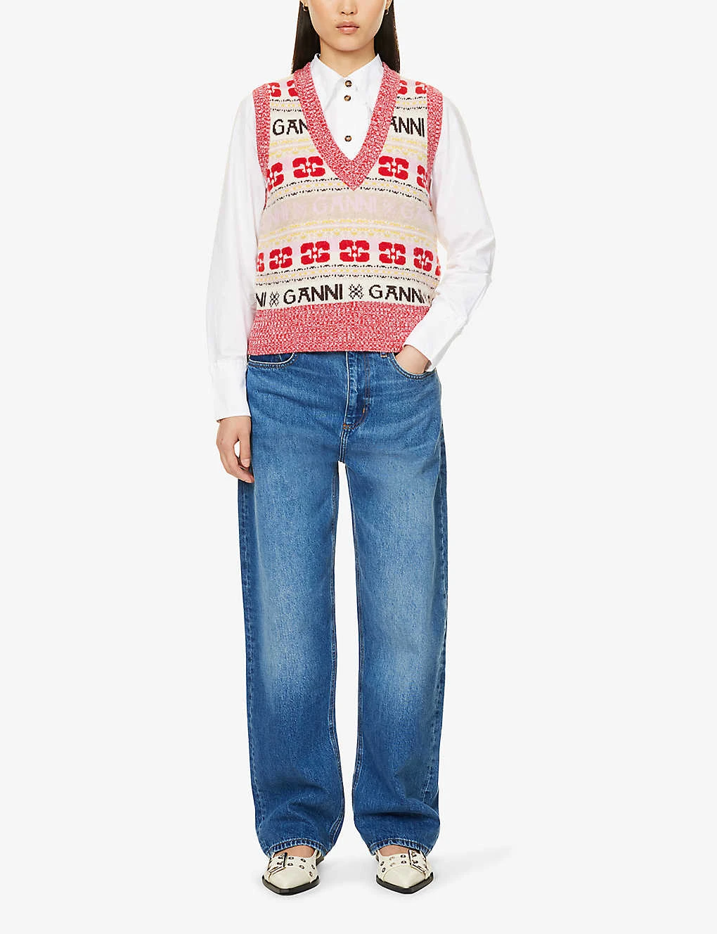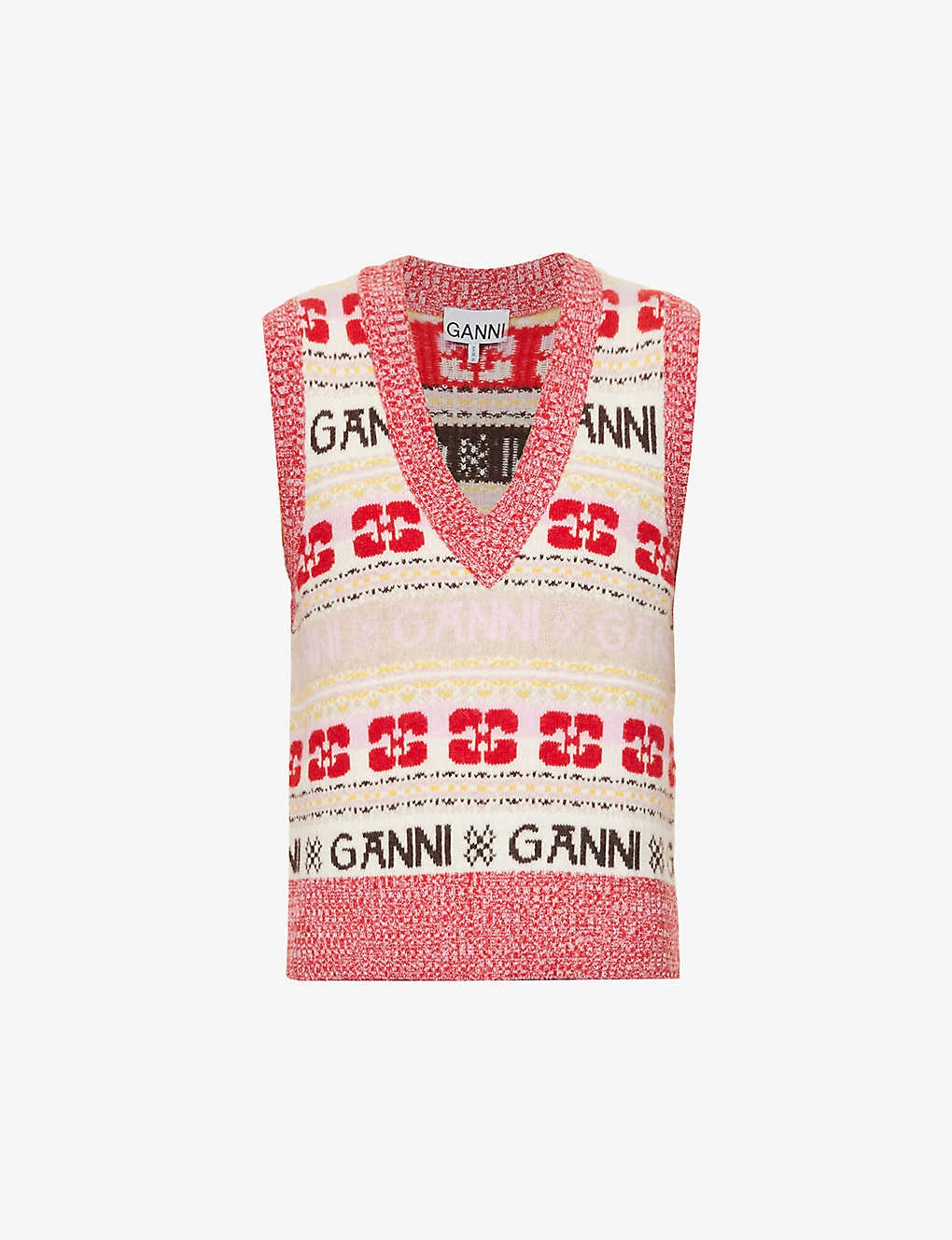 Be the first to review “Ganni Logo Intarsia-knit V-neck Recycled Wool-blend Knitted Vest” Cancel reply