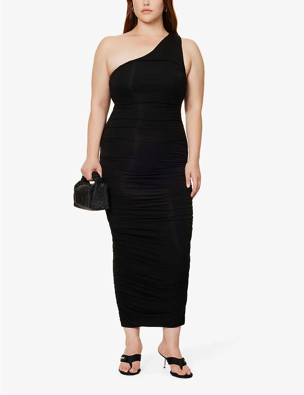 GOOD AMERICAN Ruched One-shoulder Stretch-rayon Maxi Dress