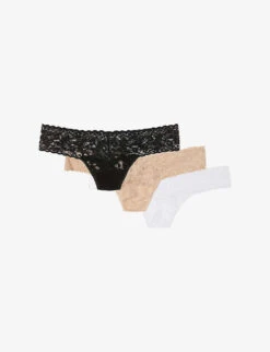 - Hanky Panky pack of three stretch-jersey lace thongs