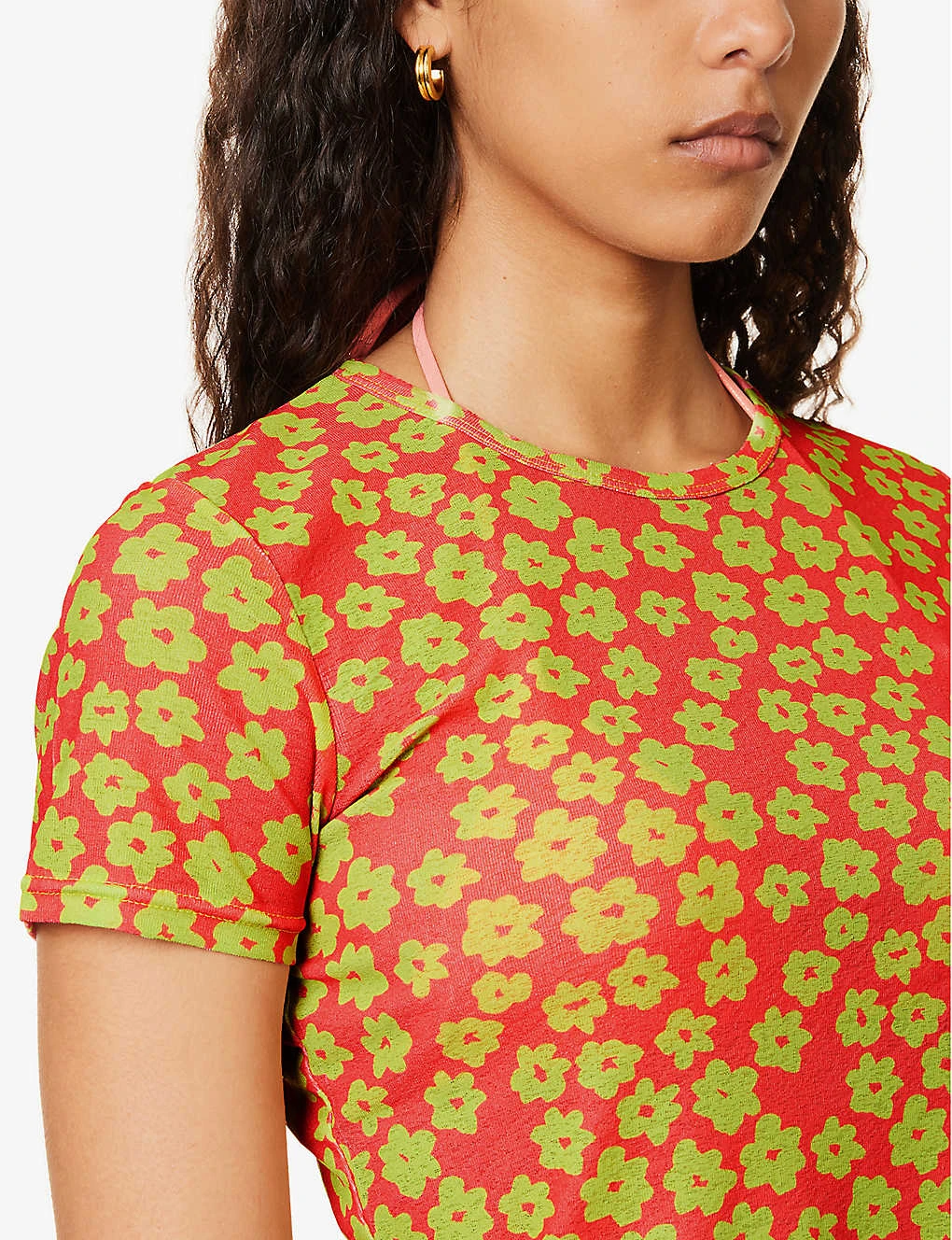 It’s Now Cool Floral-print Short-sleeved Mesh T-shirt