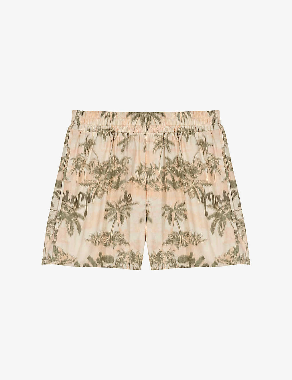 - All-over palm print, elasticated waistband, tonal stitching