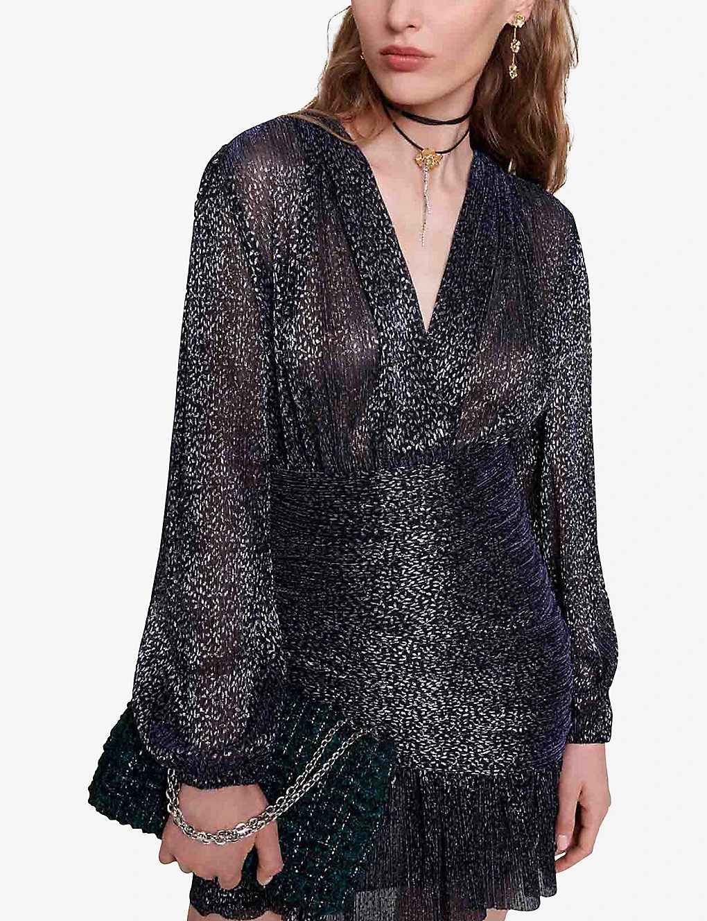 Be the first to review “Maje Runnylo Glittered Draped Woven Mini Dress” Cancel reply