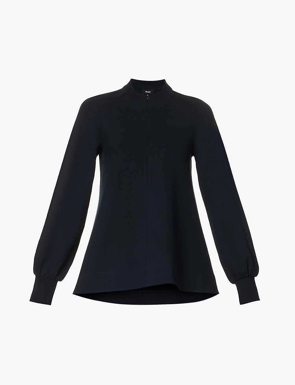 - Relaxed fit, A-line shape, round neck, long balloon sleeves, elasticated cuffs, curved hem