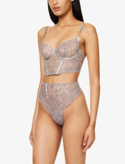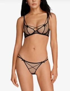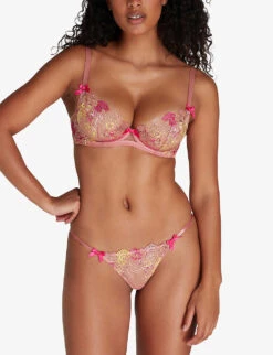 AGENT PROVOCATEUR Zuri Floral-embroidered Mid-rise Mesh Thong