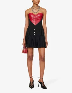 MOSCHINO Sweetheart-neck Contrast-panel Wool-blend Mini Dress