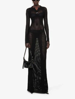 Polo-neck Long-sleeved Knitted Maxi Dress