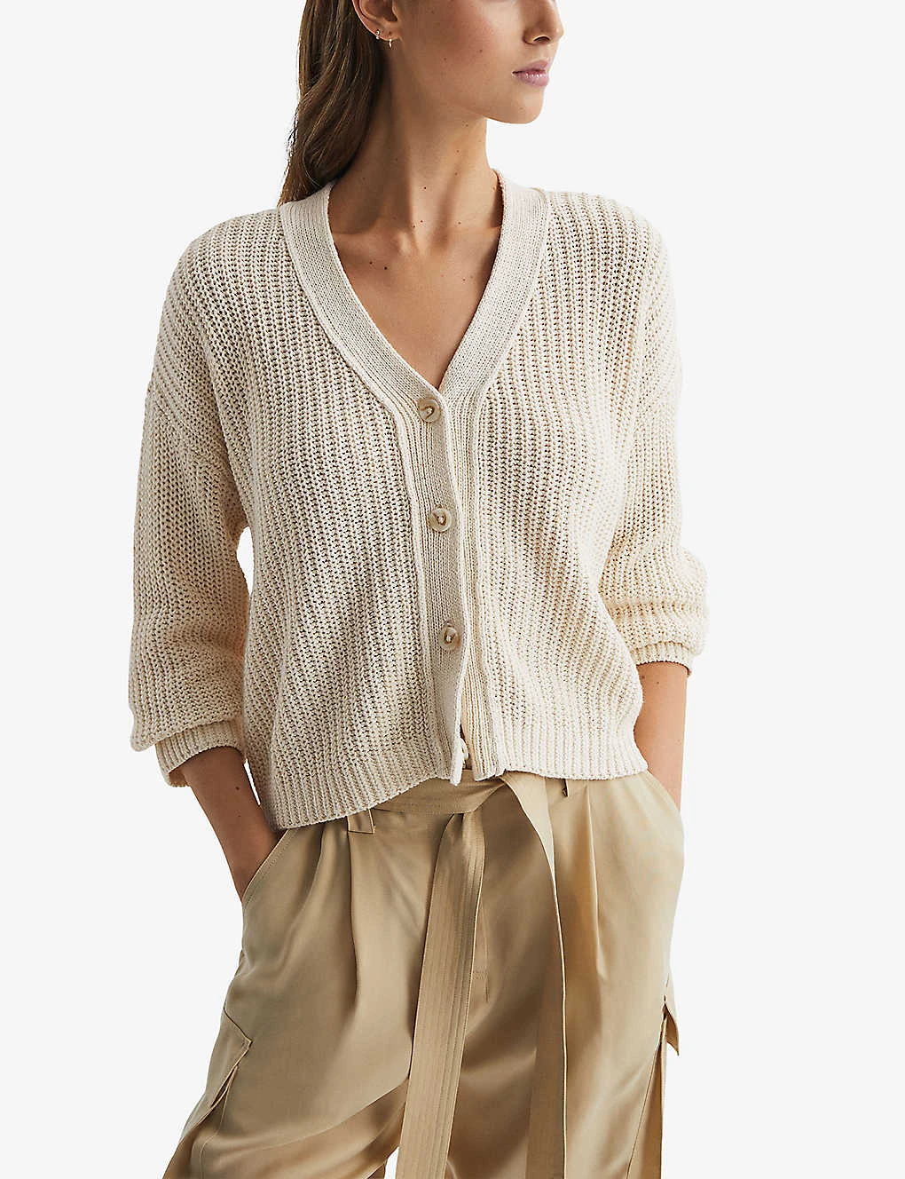 Be the first to review “Reiss Adeena Button-through V-neck Linen And Cotton-blend Cardigan” Cancel reply