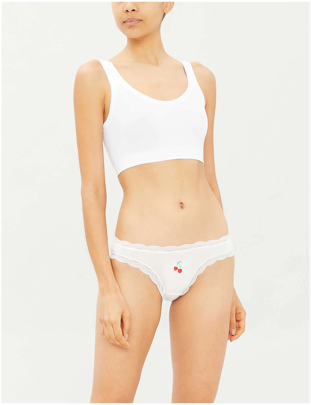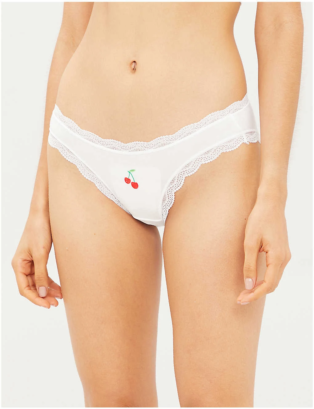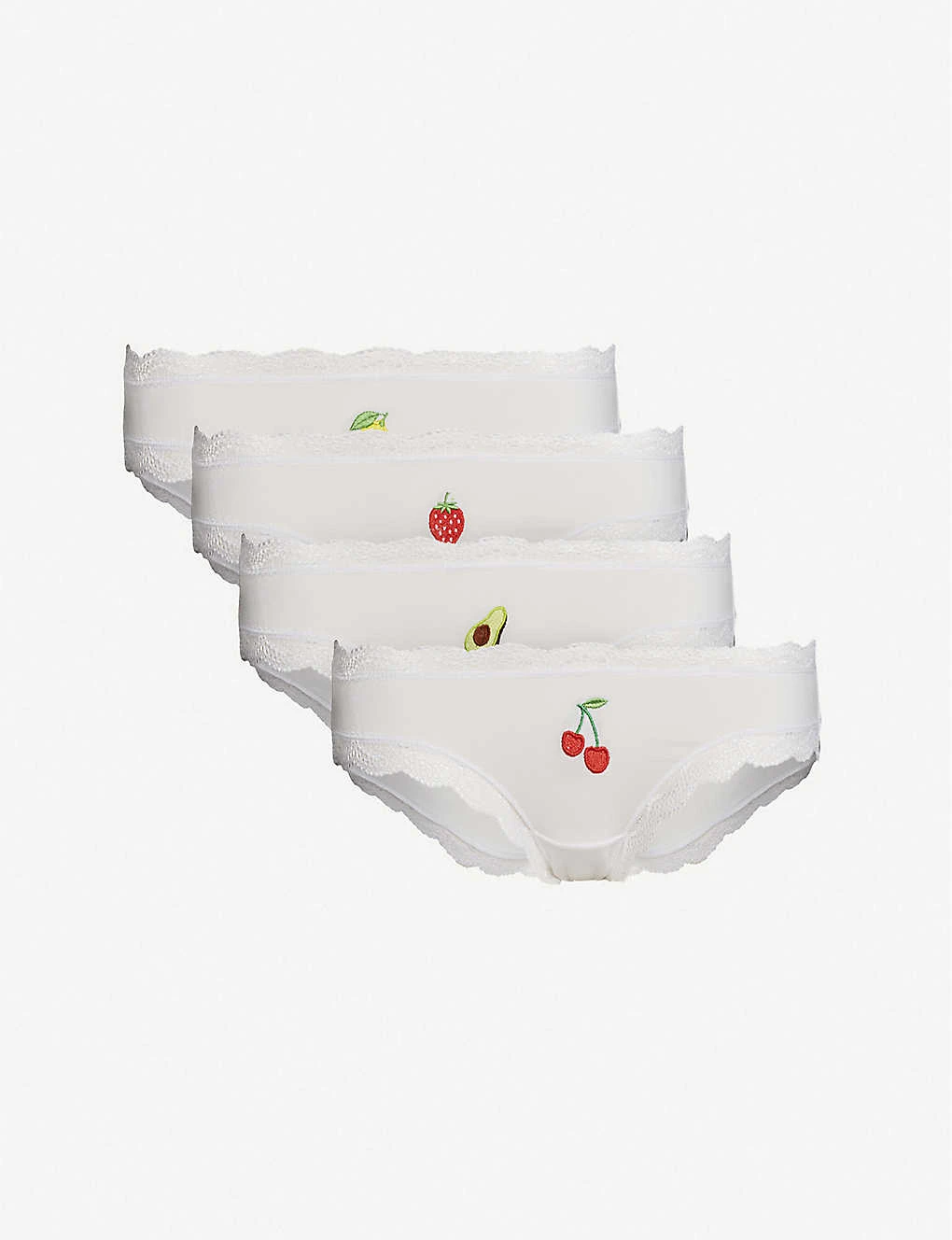 Stripe & Stare pack of four stretch-jersey briefsDetails: Mid riseElasticated waistbandGraphic embroidery at frontSheer scalloped lace trimsFull coverage at backSlips onFabric: 95% polyester, 5% elastaneLightweight, stretchySize & Fit: True to sizeCare: Hand wash