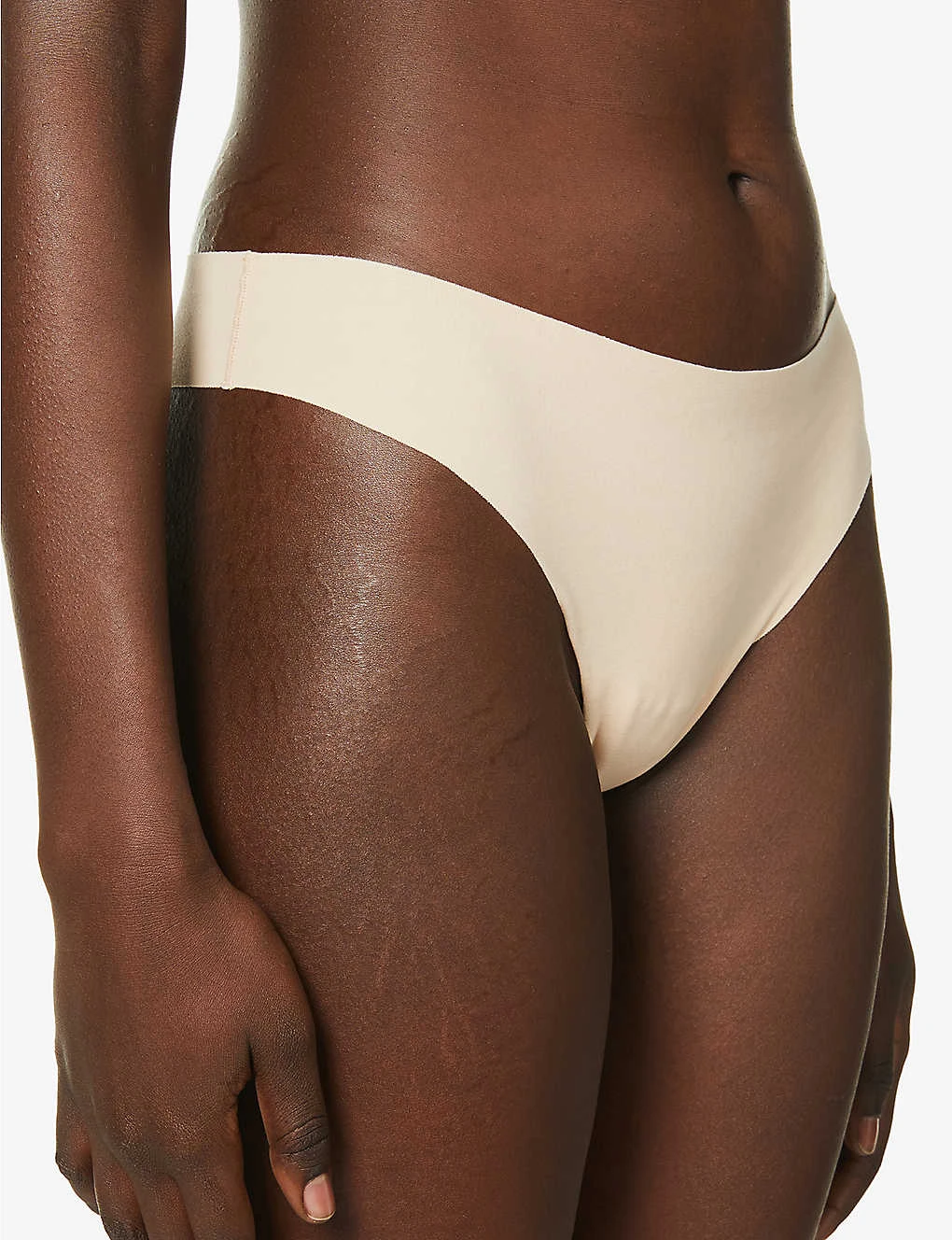 - Mid rise, seamless construction, low coverage at back