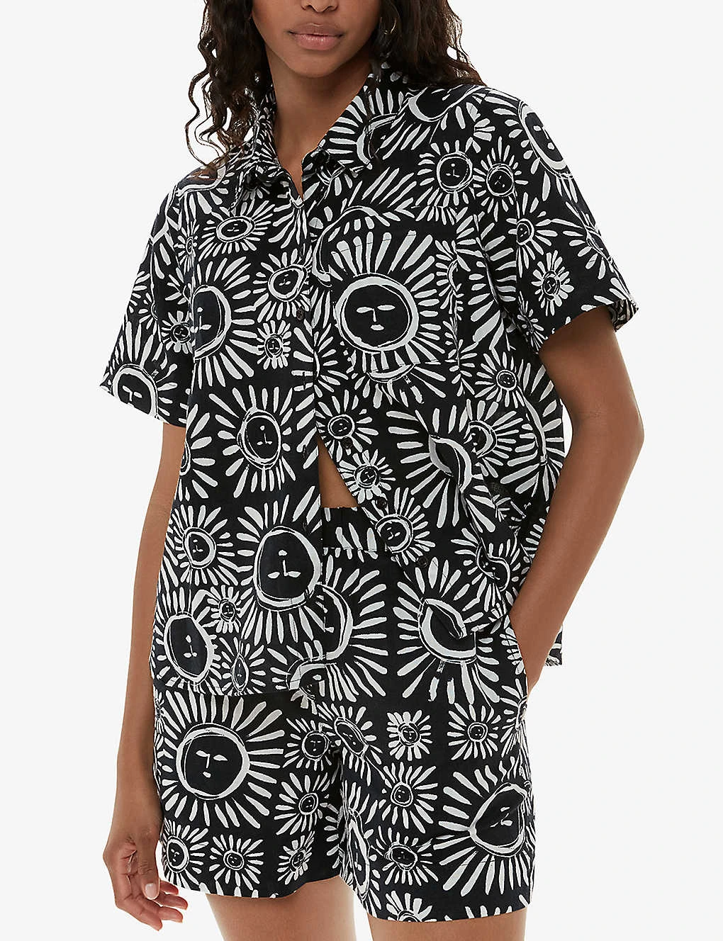 Be the first to review “Whistles Sunman Graphic-print Elasticated-band Linen Cotton-blend Shorts” Cancel reply