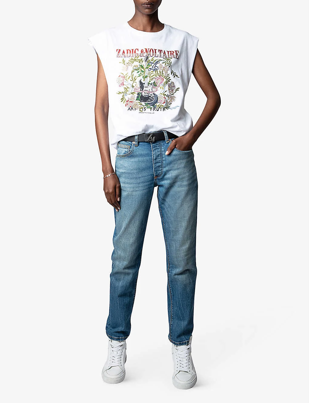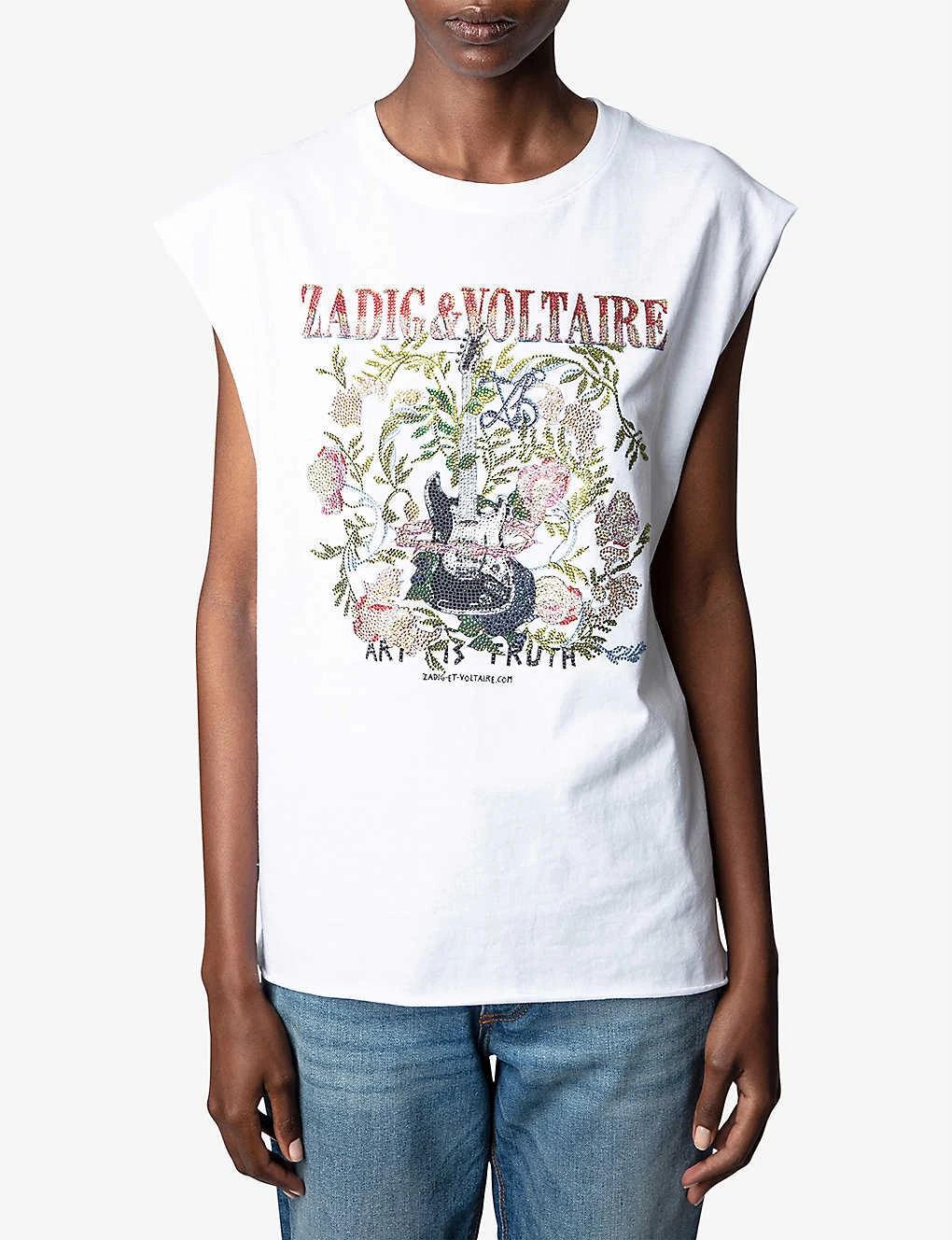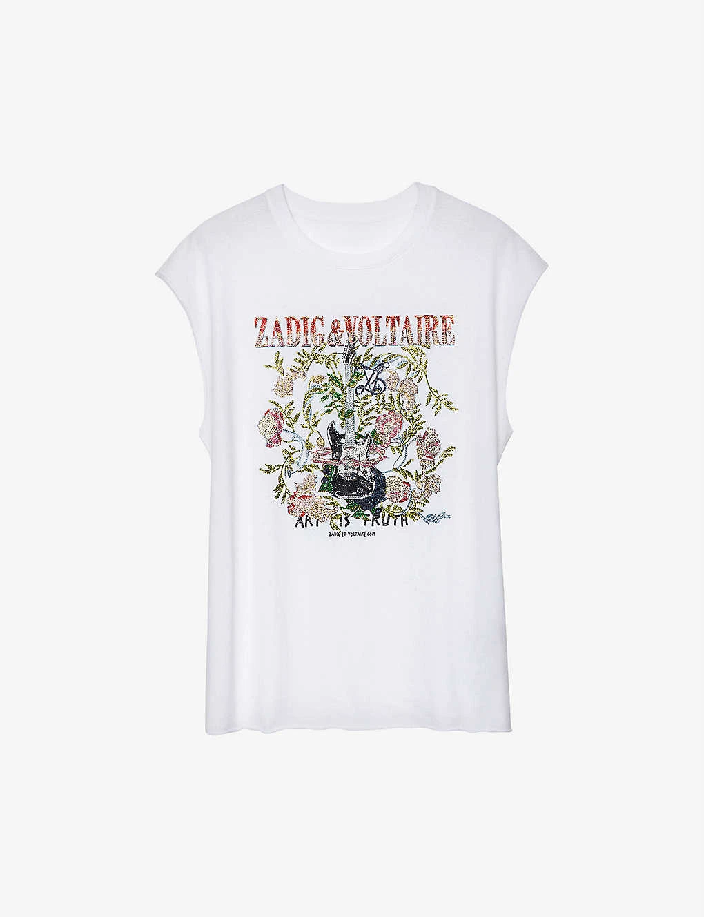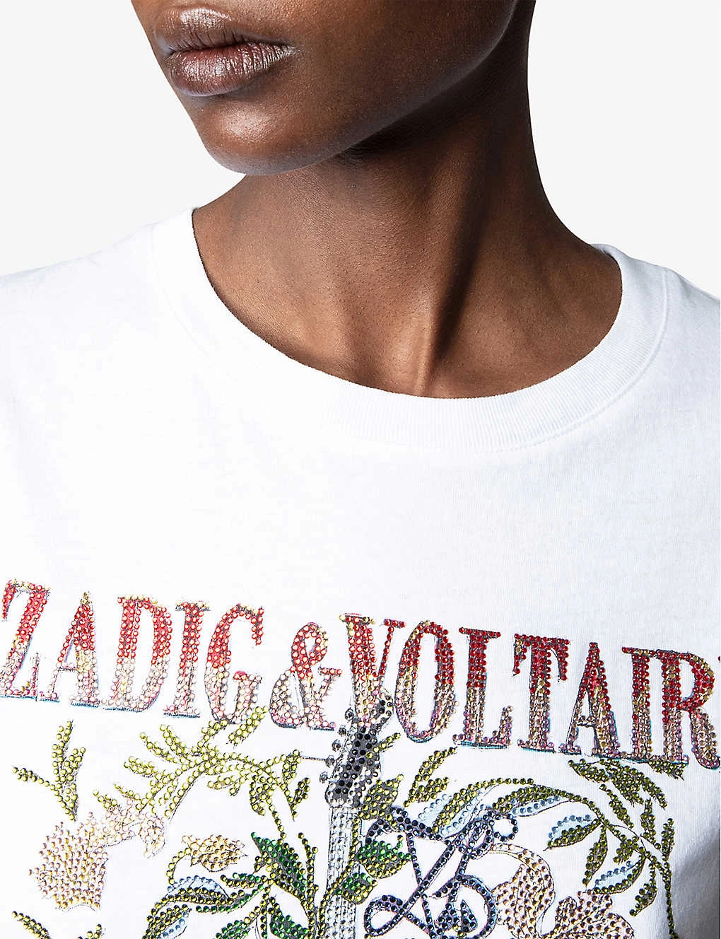 Zadig & Voltaire Cecilia Crystal Guitar And Floral Cotton T-shirt