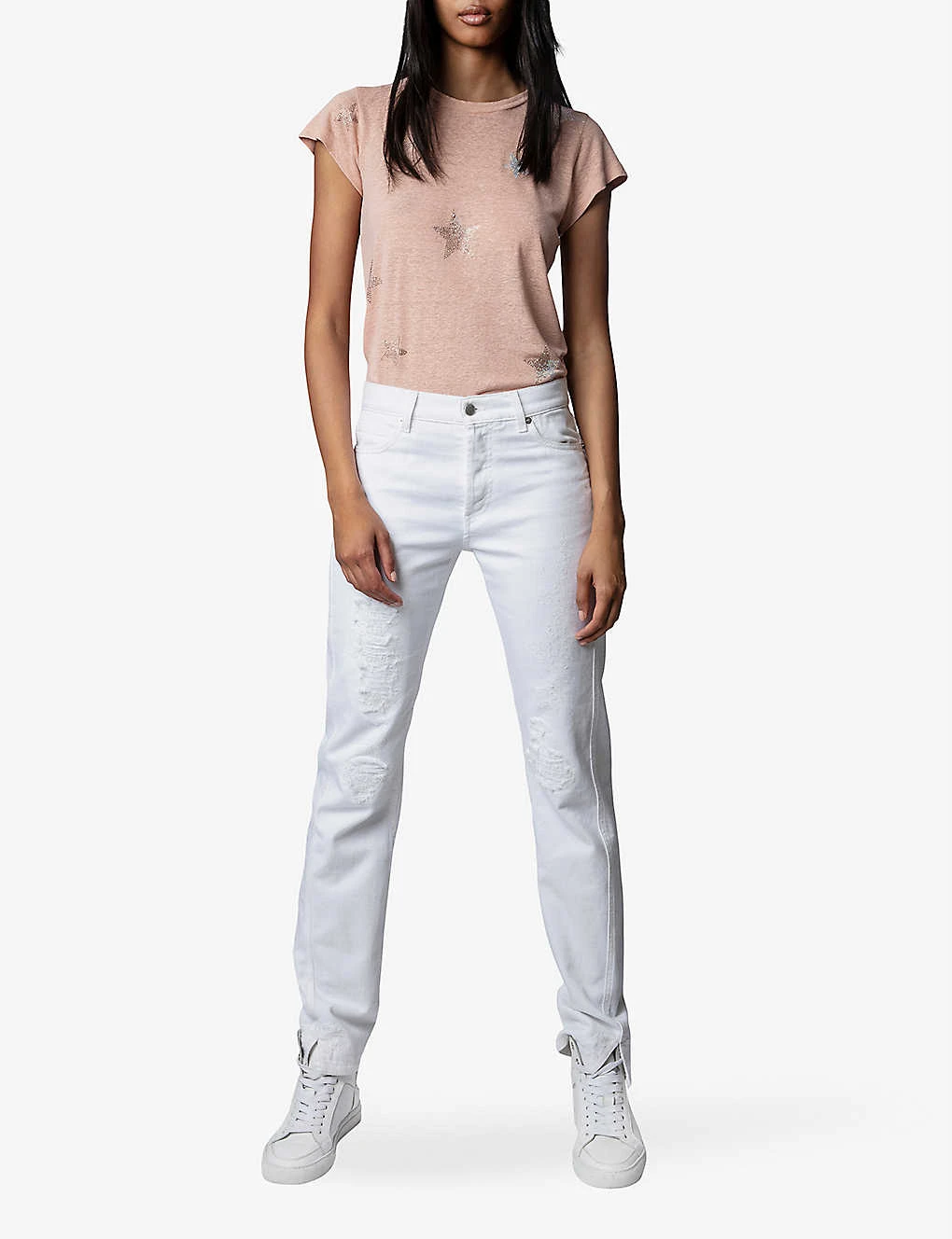 Zadig & Voltaire Star-pattern Diamante-embellished Cotton-blend T-shirt